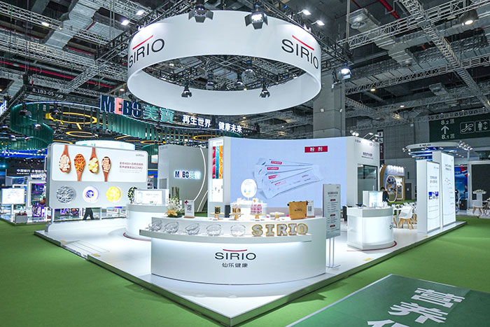 項目名稱:2023上海國際進口博覽會 舉辦地點:上海國家會展中心 合作企業:仙樂健康 面積:166㎡展位展臺搭建