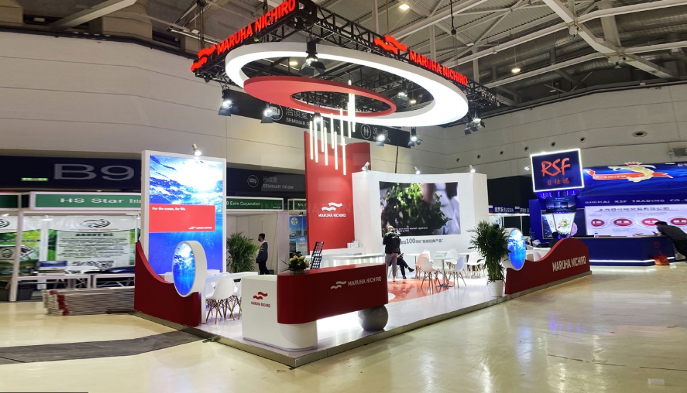 項目名稱:第26屆中國國際漁業博覽會和中國國際水產養殖展覽會 舉辦地點:青島·紅島國際會展中心 合作企業:maruha nichiro 面積:72㎡展位搭建