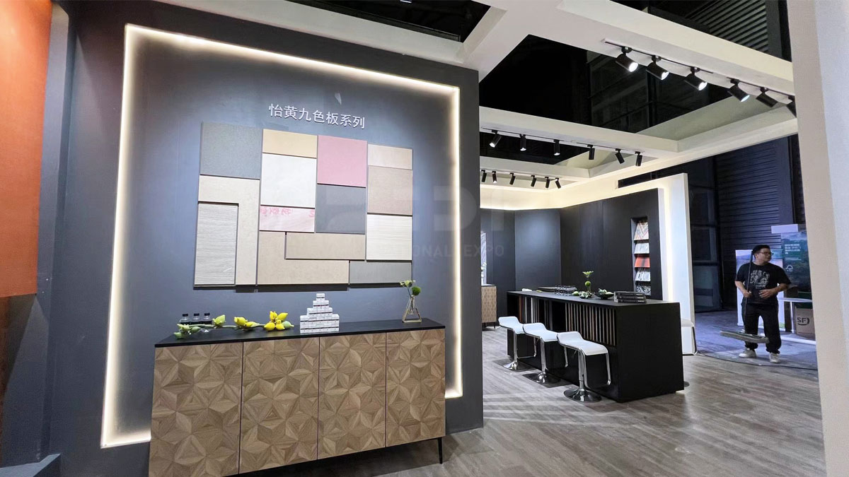 本次 怡黃展臺占地面積為72㎡,展位位于新國際中心(N5-T19),以特色的展臺風格及產(chǎn)品獲得國內(nèi)外眾多觀眾的喜愛,展位現(xiàn)場人潮涌動,歡聲持續(xù)不斷。正如上海家具展的基因是一直在創(chuàng)變,怡黃好生活本次展會攜高科技花色、深肌理設(shè)計和飾面基材新品,更新、升級、擴容你的設(shè)計板材庫。