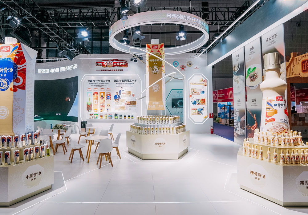 2024上海酒店餐飲展位布置設計搭建項目介紹:2024上海國際酒店及餐飲業博覽會于3月27日正式開幕,澤迪攜手“勁霸”震撼登場,本次展臺占地面積為156㎡,展臺木結構、turss架搭建而成。以白色簡約、大氣開放式展示。一眼望去,展位中間個性、獨特的產品展示風格,盡顯“勁霸”在餐飲行業30年重要的品牌地位。
