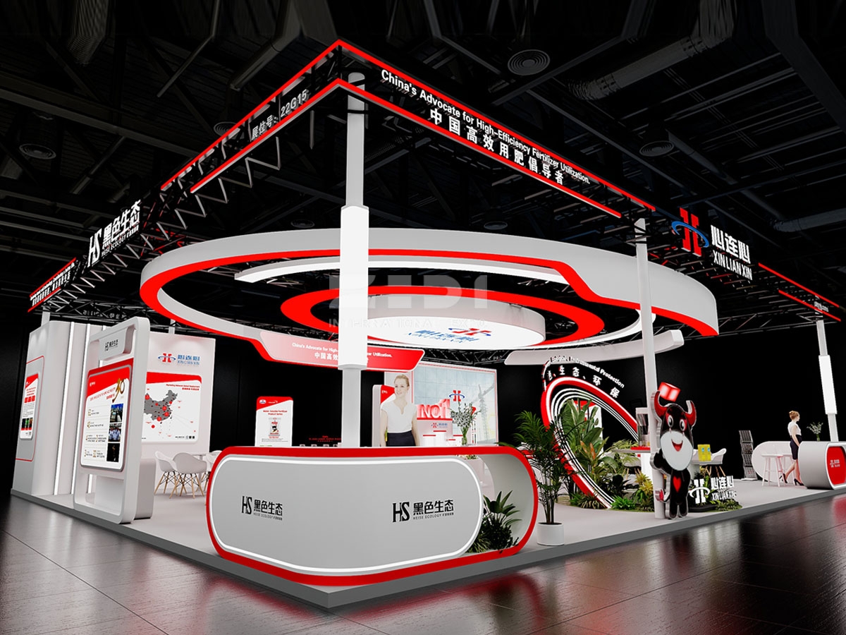 在色彩運(yùn)用上,紅色與白色的搭配堪稱點(diǎn)睛之筆。紅色,在中國文化中象征著熱情、活力與豐收,這對于肥料行業(yè)而言,寓意著為農(nóng)作物帶來蓬勃生機(jī)與豐厚收獲,與心連心助力農(nóng)業(yè)發(fā)展的使命相得益彰;白色則代表純凈、專業(yè),體現(xiàn)了心連心肥料產(chǎn)品的高品質(zhì)與生產(chǎn)過程的嚴(yán)謹(jǐn)。這兩種顏色相互交織,貫穿于整個(gè)展位空間。無論是接待區(qū)醒目的紅白配色背景墻,還是產(chǎn)品展示區(qū)以白色為底、紅色點(diǎn)綴的展示架,都營造出一種既醒目又專業(yè)的視覺效果,讓心連心展位在眾多展位中脫穎而出。